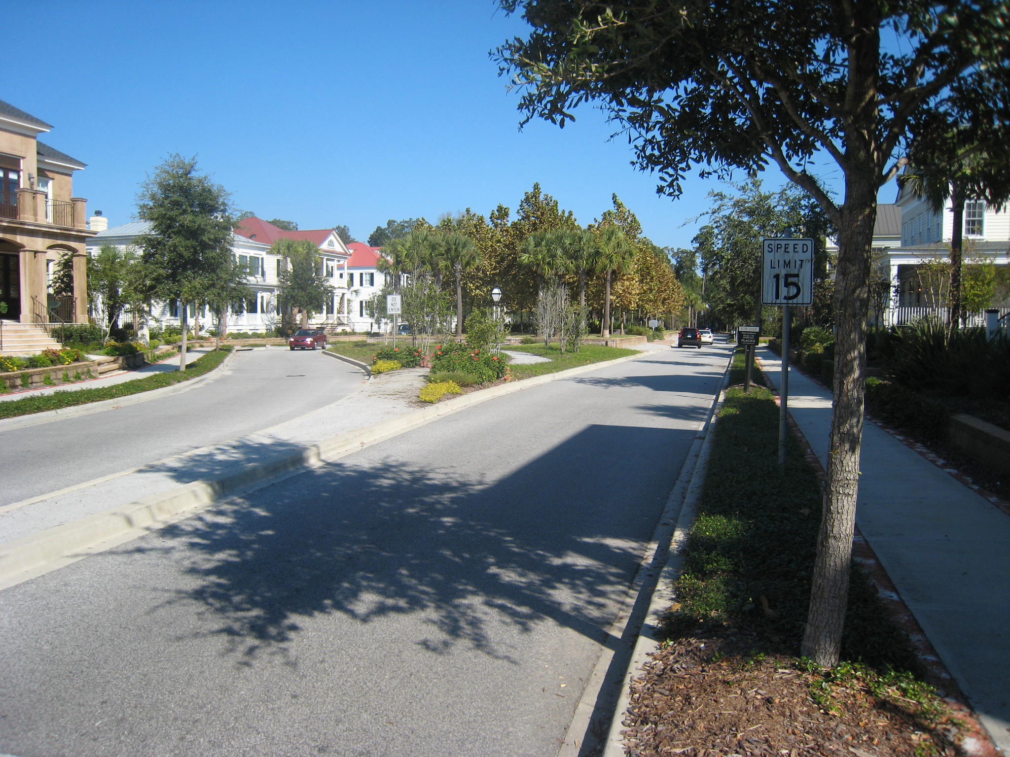 Victor Dover picked Perseverance Square from Vince Graham’s now famous I’On community outside of Charleston. Dover-Kohl planned the elongated square working with Andres Duany and Xavier Iglesias and Vince Graham in a quiet part of I’On. The square in some ways is reminiscent of the thin crescent park at Seaside which terminates Ruskin Square to the north. Perseverance from apex to apex is
