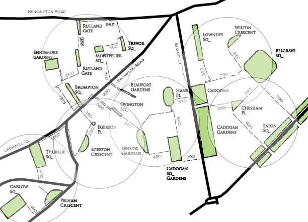 We would be looking for the underlying design principles. I remember Andreas Duany’s emphasis during a Placemaking conference in Atlanta: “It is always a mistake to copy. Always. Always.” We want to look for the underlying principles of putting together wonderful neighborhoods; we want to understand the various dimensional relationships and the related economics. Duany has often underscored the value of “kicking the tire” to determine what works, what doesn’t and why. Since residential squares and plazas should be a key component of the design of an overall neighborhood or district, Belgravia and Kensington offer an urban designer an opportunity to visit a large number of squares in a few hours.
